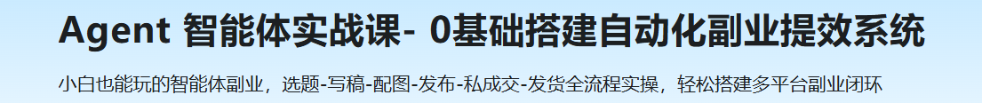 不用囤货、不露脸、不写文案,一人一账号也能增加你的副业收入。课程把“选题-写稿-配图-发布-私信成交-自动发货”6大步骤拆成智能体流水线,Agent在后台替你完成:30天选题库、爆款封面。0基础可学,提供可复制的虚拟资料货源+全套提示词模板,轻松上手,流程自动流转,让AI为你的副业保驾护航。